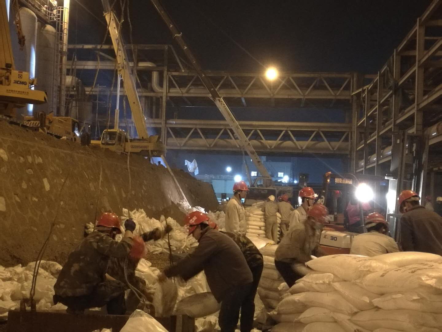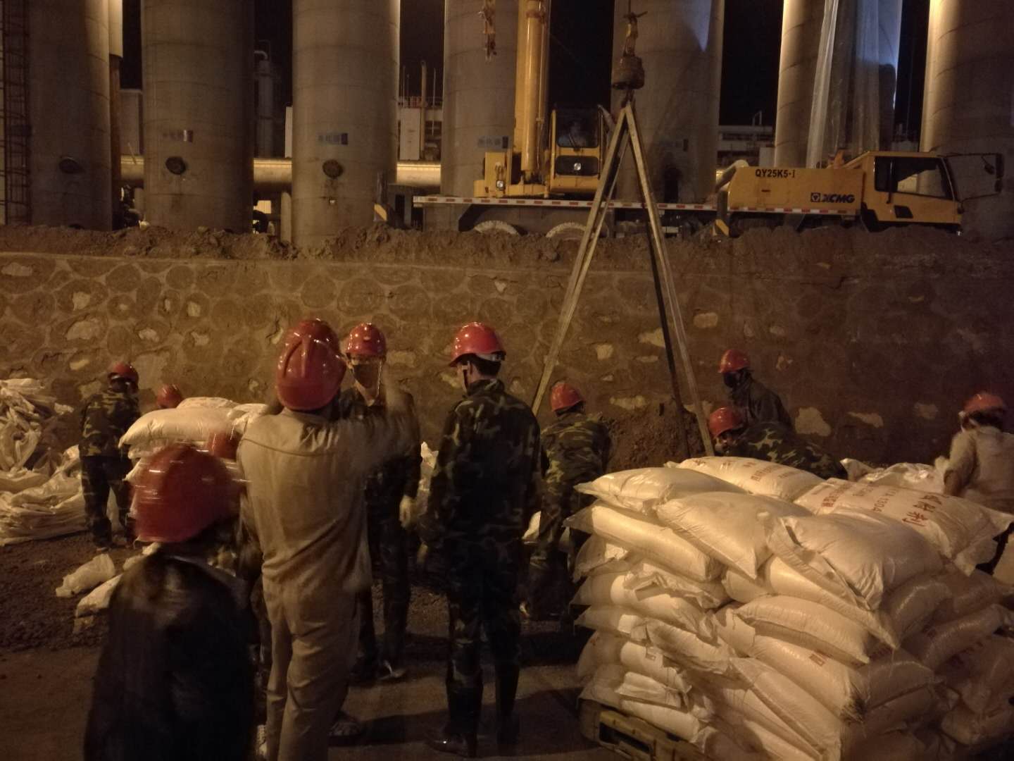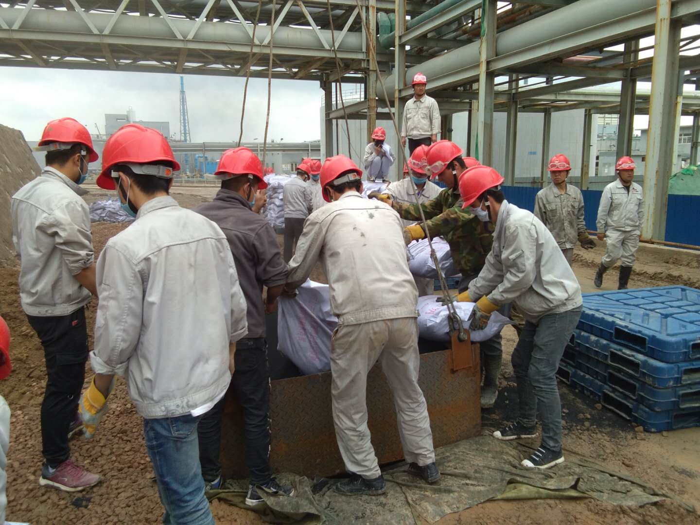 7月4日中午12時,連續幾天的陰雨天終于暫停,盡管天公不作美,烏云密布,隨時會下雨,但對奮戰在廣拓化工一線的檢修者們來說,雨住了就是最好的消息。因為決定化工系統能否按時開車的關鍵項目,本次計劃檢修的重頭戲--乙炔干燥更換吸附劑工作終于能開始了。“趕快安排吃飯,抽調一切力量,13時準時到場協助檢修,我們要與天氣賽跑,趕在下雨前完成乙炔干燥吸附劑的填充工作。”隨著化工公司總經理賈存富的一聲令下,各裝置、科室應聲而動,積極組織人員參與到檢修工作中,一場與天氣賽跑的搶修大戲開始了……