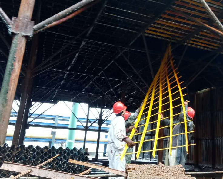 無論自身如何泥水相伴,冷卻塔上下的檢修人員你拆我接,你接我送,緊張有序、團(tuán)結(jié)一致地進(jìn)行著大面積的填料拆取、塔桿更換工作。