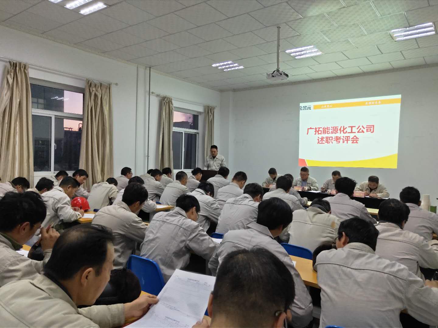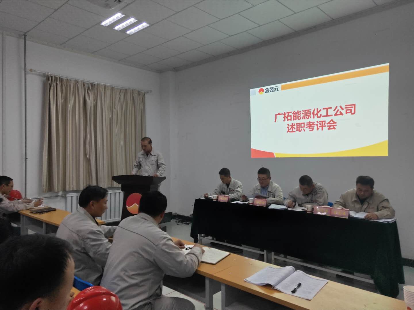 按照集團(tuán)公司及固原片區(qū)管理中心工作安排,金昱元廣拓化工公司氯堿系統(tǒng)和樹脂系統(tǒng)管理人員述職考評會分別于2018年12月24日和2019年1月2日在化工公司多媒體培訓(xùn)室組織召開。化工公司領(lǐng)導(dǎo)班子成員、技術(shù)員以上管理人員以及相關(guān)基層單位代表等130余人參會,會議由興昊永勝鹽業(yè)支部副書記王志杰主持。