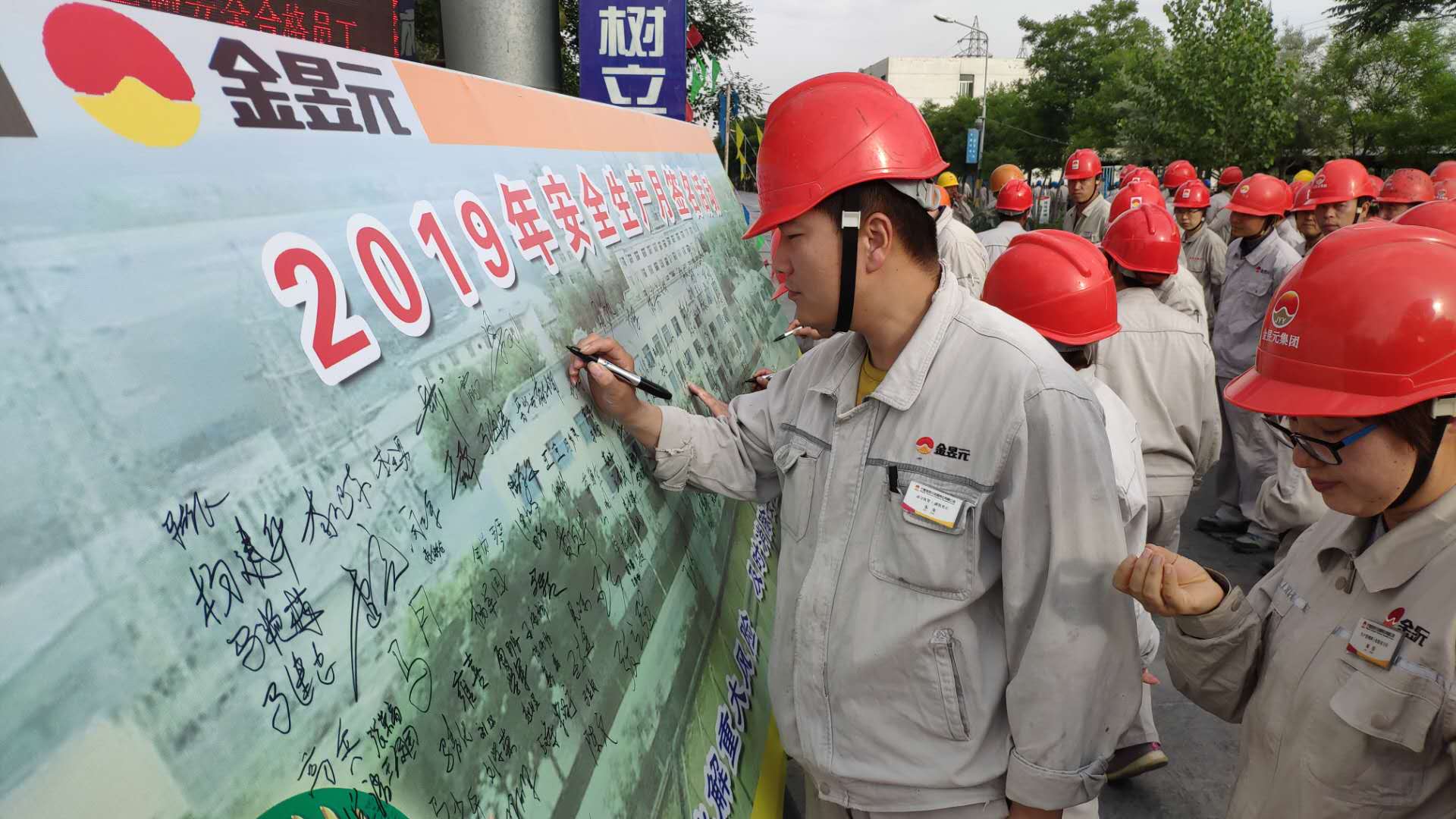 各級(jí)管理人員和參會(huì)人員有序進(jìn)行“安全簽名”活動(dòng)。