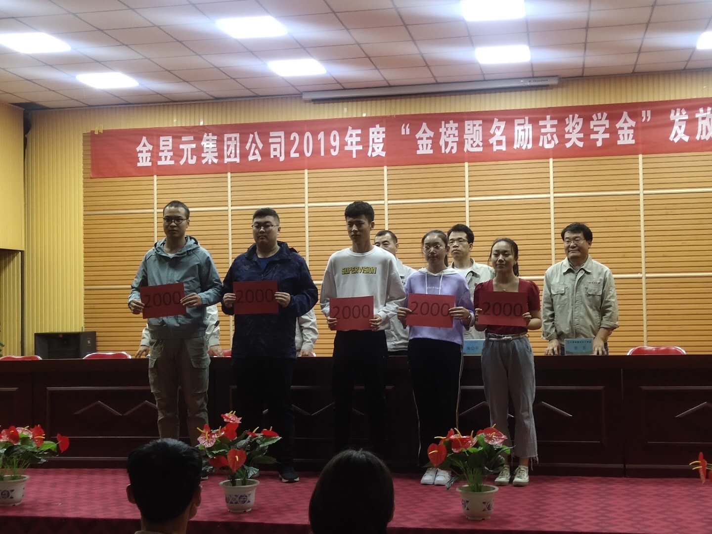 2019年8月23日,集團(tuán)公司領(lǐng)導(dǎo)為2019年度金昱元的職工子女考取一、二本院校。發(fā)放“金榜題名勵(lì)志”獎(jiǎng)學(xué)金,此次活動(dòng)鼓勵(lì)了全體金昱元職工,學(xué)習(xí)這些父母培養(yǎng)優(yōu)秀子女的經(jīng)驗(yàn),同時(shí),此大會(huì)能為培養(yǎng)出優(yōu)秀的兒女的父母表示祝賀。