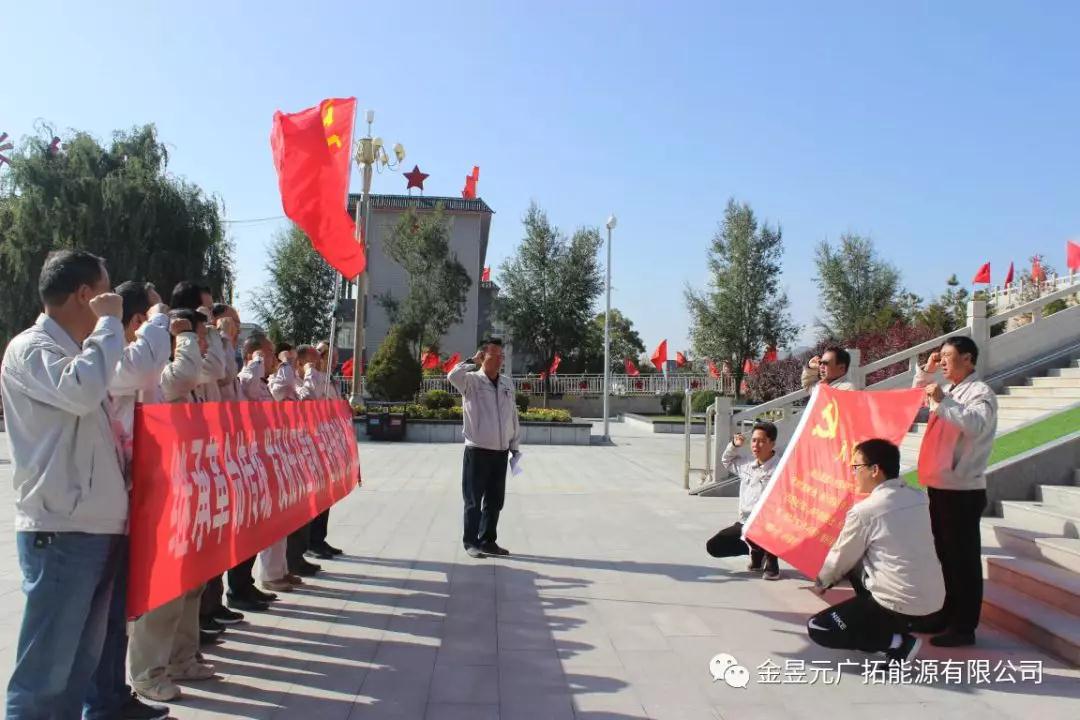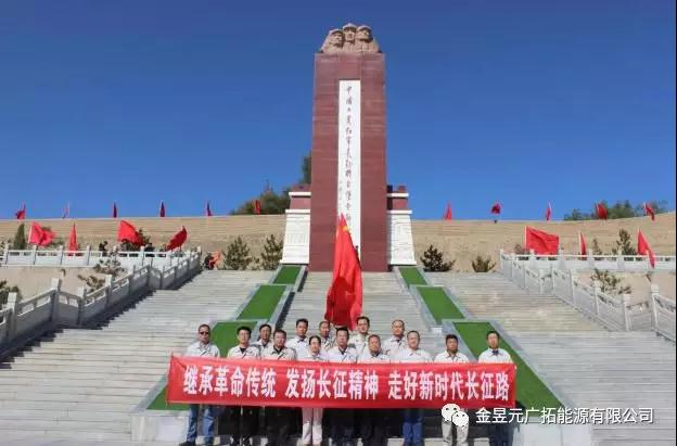 2019年10月17日,寧夏金昱元廣拓能源有限公司黨總支組織部分黨員代表,來到固原市西吉縣將臺堡紅軍長征會師紀念園,開展“繼承革命傳統、發揚長征精神、走好新時代長征路”主題黨日活動,緬懷革命先烈、聆聽長征歷史,重溫習近平總書記偉大號召,接受精神洗禮,繼承革命傳統,走好新時代長征路。向紅軍長征會師紀念碑敬獻花籃并鞠躬,重溫入黨誓詞,參觀了三軍會師紀念館,了解了紅軍長征在寧夏的歷史始末,追憶紅軍長征歲月,傳承光榮革命傳統。