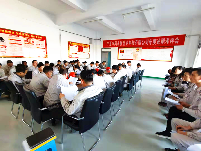 2019年11月13日下午,寧夏興昊永勝鹽業(yè)科技有限公司組織召開了2019年度管理人員述職考評會,會議由綜合科科長主持,公司經(jīng)理層、各級管理人員及32名員工代表參加會議。