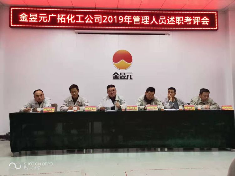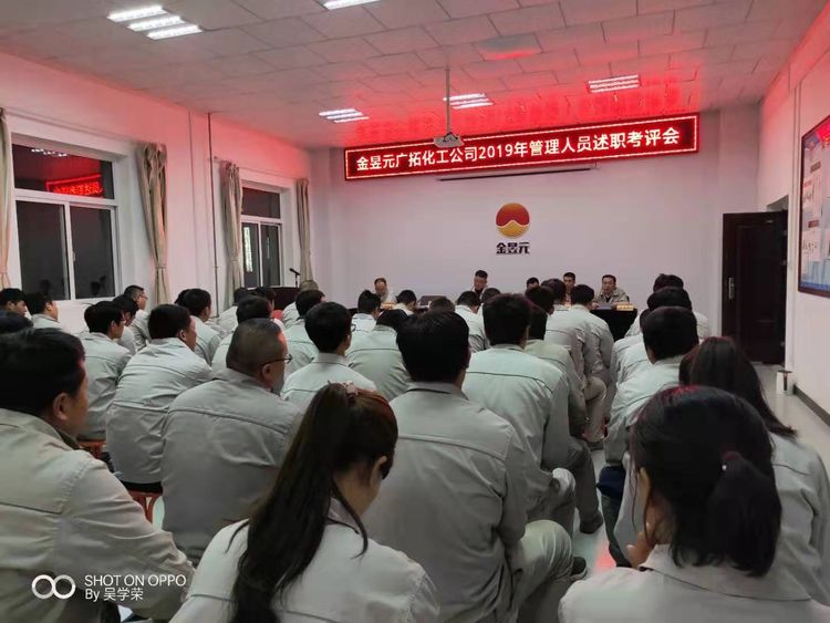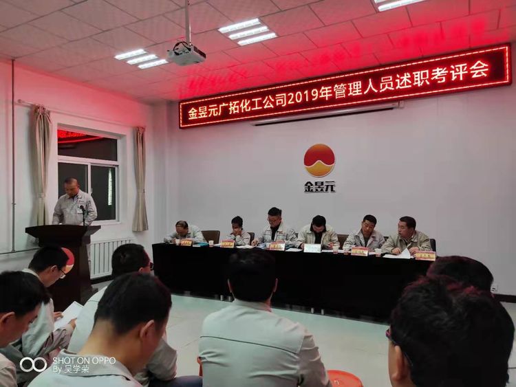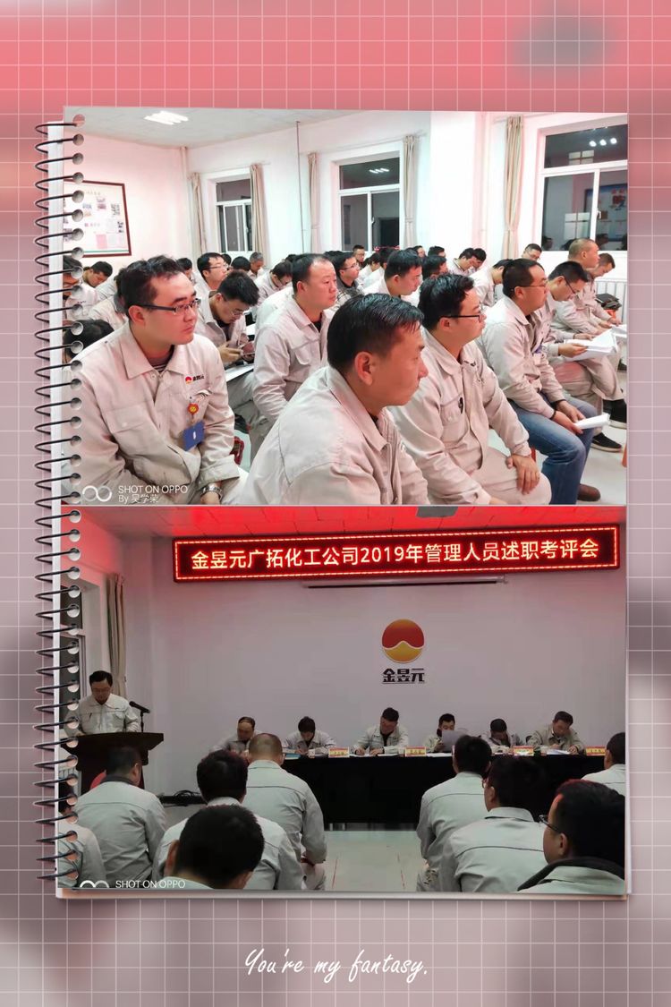 2019年11月19日—20日,廣拓化工公司利用下班時間組織召開了2019年度管理人員述職考評會,會議由興昊黨支部副書記王志杰主持,化工公司總經理,副總經理,安全總監,副總工程師出席,32名述職人員及110名職工代表參加。