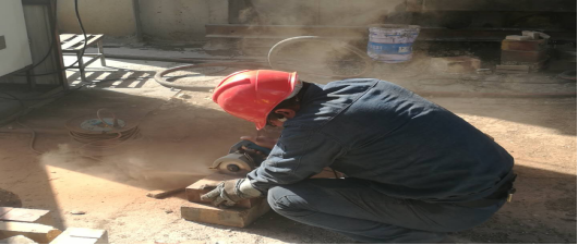 2月19日早上8點動工挖補,到當日下午19:18回轉窯點火升溫,全體管理人員、成品裝置維修工人以及回轉窯系統全體在崗工人,在進入檢修作業狀態的那一刻起,一會兒走入窯內,熱氣撲面,嚴肅、緊張的計算和規劃,一會兒生產科科長張振忠、成品裝置裝置長帶頭掄動著鐵錘,工友們或蹲著、或扶著支架,每個人都在揮汗如雨的忙碌著,淺綠色、白色工服上斑斑點點不一的顏色見證著他們流下的每一滴汗水。