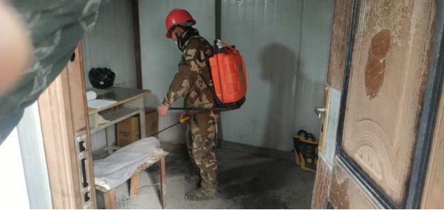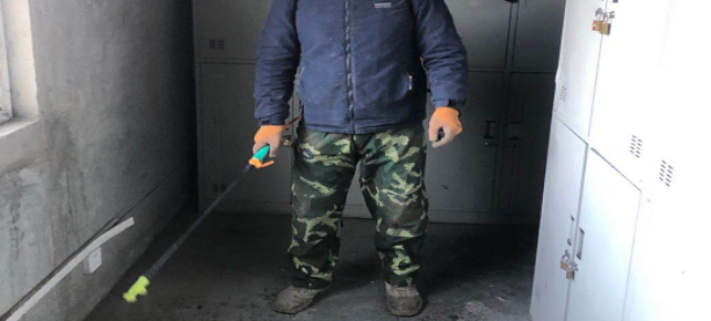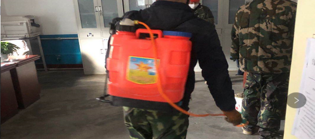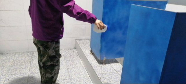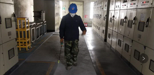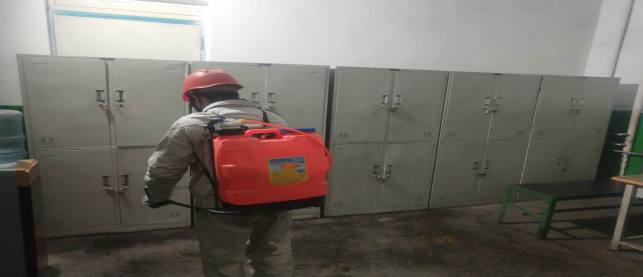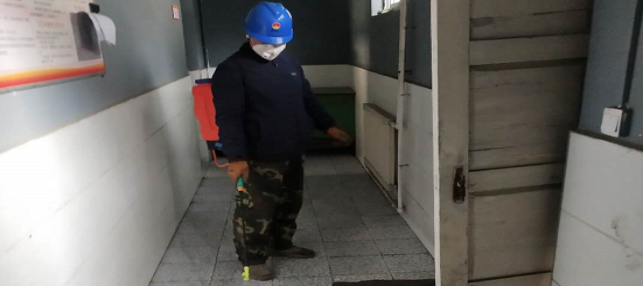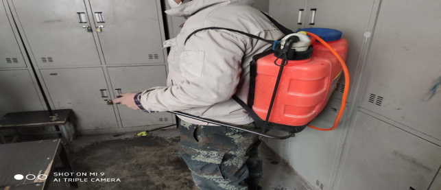 對廠區衛生間消毒。