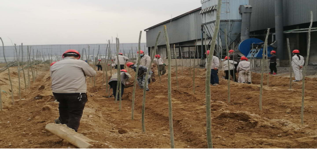 人勤春來早,植樹正當時。現場,處處是忙碌的身影,個個熱情洋溢、干勁十足,有的拿鐵鍬,有的運樹苗,你追我趕,比干勁、比進度,各個環節銜接有序,樣樣做得認真到位,個個忙得滿頭大汗。到處都是忙碌的身影和勞動的歡聲笑語……一番熱火朝天的勞動后,一棵棵新栽種的樹苗亭亭玉立,在明媚的春光中展現勃勃生機,為初春的廠區增添絲絲活力。一天忙碌后,1000余株樹苗在此“安家落戶”。
