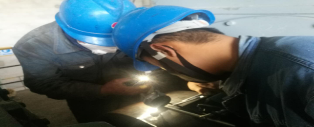 在檢修期間,他們充分發揚了嚴謹認真,精益求精的工作作風,為了徹底解決設備存在的癥結,他們擠進狹小的空間,補焊、切割。這樣你追我趕地干著。累了就稍作休息,渴了就喝口涼水。胳膊振酸了,手掌磨麻了,可工作的熱情卻仍高漲。在經過全體努力,每一個設備逐漸恢復了暫新原貌。