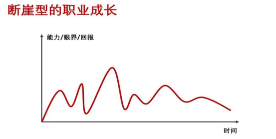 這一類職業發展路徑,我稱之為“斷崖式”成長(如下圖):