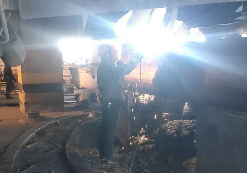 12月20日,維修工對出爐口出爐設備設施進行修復,主要修復了出爐口防火墻擋板、校正出爐軌道板和導向輪,大大減少了出爐系統制約生產的現象。隨著環保局勢日益嚴峻,裝置組織維修工檢查圓盤布料器散點收塵和出爐收塵煙罩,確保收塵效果。