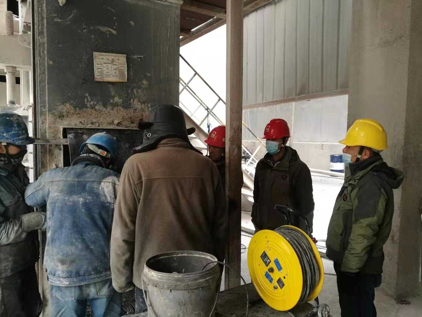 檢修作業全程跟蹤,一天一夜檢修下來,有睡在辦公室沒回家的,也有吃飯就在作業現場……比比皆是。總經理吳紅衛更是如此,一個作業一個作業現場轉上轉下,從2026提升機作業點到回轉窯主傳減速機,再到篦冷機、煤磨、烘干破、預熱器、2301、2323、2401提升機以及高溫風機、回轉窯窯內及燃燒器檢修現場,指導,建議,一直值守在現場,忙著跟工人們同時收工,一整晚都未歸宿就寢室。工人們,裝置長擔心他的身體,時常提醒讓他回去休息一下,喝口水,而他放心、安慰大家說,“我和大家一樣的心情,早完工,產量就能早生產一點,我們后續生產就能輕松一點,大家加油”。一直以來,他和這個班子成員、工人們一起頂著嚴寒,一直堅守在現場安全履職和協調把控檢修進度,不厭其煩的一次次的詳細交底,直到一項一項設備檢修更換完畢。