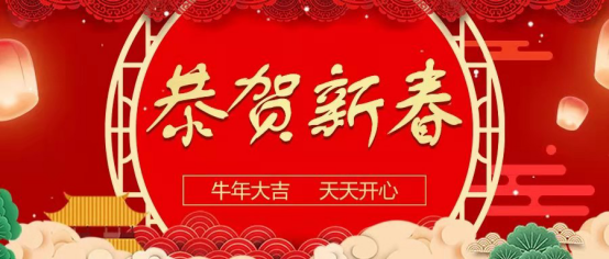 伴隨著渾厚的新年鐘聲,沐浴著冉冉升起的朝陽,金鼠辭舊歲,福牛迎春到。至此歲序更迭,辭舊迎新之際,我們通過“新媒體”平臺給大家拜年!祝大家在新的一年里身體健康、工作順利、生活美滿。牛年大吉!