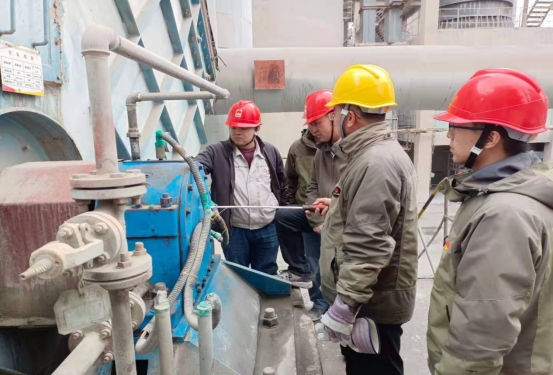 4月13日凌晨6時許,發現高溫風機橫向振動大,造成嚴重的安全生產隱患,為窯系統提產、提質造成障礙!為此,以堅持實干為導向,明確責任、擔當作為、加壓奮進,管理人員召開總體分析會,細化任務,合理安排人員互相配合,搶時間,抓進度,確保隱患盡快消除。