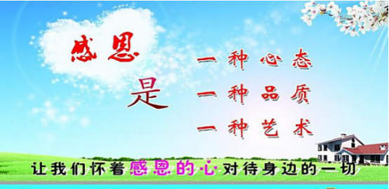 做人要懂得感恩,生活中需要我們感恩的事情很多,當你在和別人發(fā)生爭吵的時候,在因為一點小的事情與朋友發(fā)生矛盾的時候,在你和同事因為工作的事情而意見不合,在你和上司交流的時候因為他對你的批評而耿耿于懷等等這些,你是否知道問題出在什么地方嗎,你進行過分析嗎?不要只記得別人和你不順利的事情,也要想想別人對你的幫助,那你是否對幫助過你的同事說過感謝的話嗎?
