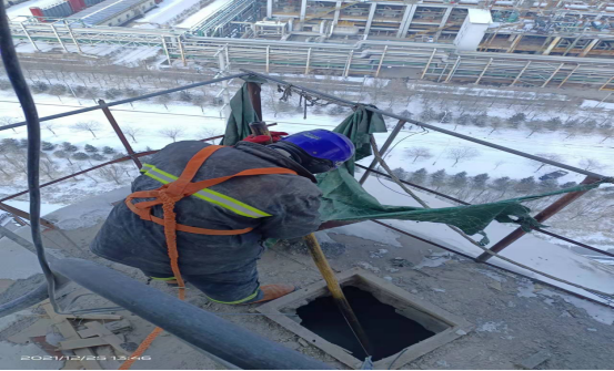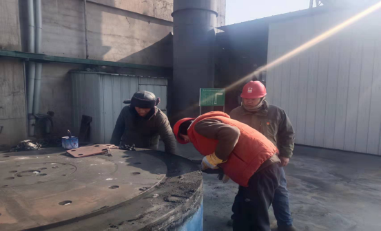 檢修人員鉆進(jìn)預(yù)熱器檢查門子是檢修預(yù)熱器管道的“必經(jīng)之路”,也是支撐徹底完成預(yù)熱器檢修的關(guān)鍵環(huán)節(jié)。因?yàn)闀r(shí)間緊、任務(wù)重,為了不影響檢修進(jìn)度,檢修人員常常進(jìn)去干干凈凈,出來時(shí)灰土灰臉,不得不輪番上陣,從上到下,完成結(jié)皮清理。他們四人一組,從安全監(jiān)護(hù)到技術(shù)指導(dǎo),干一干,歇一歇,接著再繼續(xù)……即便是當(dāng)前零下十幾度,也能干出一身汗,喝口水的功夫,滲出的汗液就能結(jié)成冰。