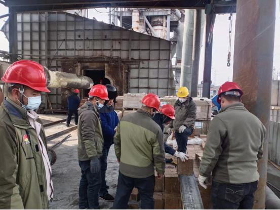 2月12日8:30—2月13日11:30分,在一片緊張有序的指揮中,展開了爭分奪秒的窯磚挖補工作。這里有公司領導、職能科室、質檢科及生產裝置全體員工,他們組成兩撥人員,實行24小時工作制。在現場,他們齊心協力、同舟共濟、相互打壓加氣,每一塊磚凝結著每一位員工心血。正當深夜,每個人堅持工作的最后一刻,從他們的表情中,可以看出,那種屏住呼吸、動作標準、目光堅定,無不詮釋著對工作的履職盡責。