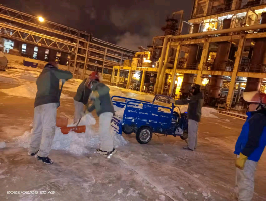 正月初五,固原迎來了2022年的第一場雪。堅守夜班的化工橫一班接班后,調(diào)度就對橫一班員工強調(diào):“今天白天下了一天雪,晚上氣溫肯定會下降,現(xiàn)場巡檢時一定要注意防滑,上下樓梯抓好扶手,穩(wěn)走慢行。防凍防凝是巡檢重點內(nèi)容,大家要加大巡檢力度和頻次,尤其是要保證保溫伴管、排污閥、疏水閥等關鍵部位正常,操作人員要認真監(jiān)控,及時觀察控制參數(shù)的變化情況,精準調(diào)控,確保安全生產(chǎn)運行”。一場大雪后,固原市銀裝素裹,人們在盡情地享受瑞雪樂趣。但在廠區(qū)內(nèi)“沙沙”聲、“咣咣”聲不絕于耳,當班的班組長及員工“以雪為令”,迅速行動,不畏嚴寒,揮舞著鐵鍬、掃帚、簸箕等一切能派上用處的除雪工具,你鏟我掃相互配合,全面徹底清理室外道路、巡檢通道、裝置現(xiàn)場等區(qū)域的積雪和凍冰,經(jīng)過數(shù)小時的奮戰(zhàn),現(xiàn)場干凈整潔,切實保證了裝置安穩(wěn)生產(chǎn)。