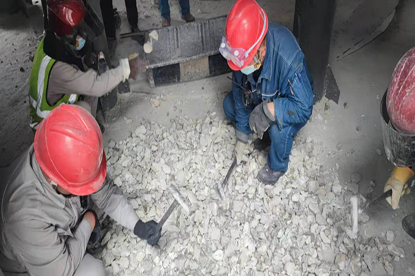 嚴(yán)格執(zhí)行白灰窯燒嘴看火及出灰探料管理機(jī)制;白灰窯崗位每班安排1-2個(gè)人,每小時(shí)使用鋼釬對四層燒嘴處沉料情況進(jìn)行確認(rèn),每次出灰必須檢查出灰機(jī)內(nèi)是否有結(jié)瘤。發(fā)現(xiàn)燒嘴處物料燒結(jié)不沉料時(shí),立即關(guān)小或關(guān)閉相對應(yīng)的煤氣閥門,等待觀察沉料情況。發(fā)現(xiàn)出灰機(jī)有結(jié)瘤無法正常出料時(shí),立即組織人員清理結(jié)瘤,避免物料煅燒超時(shí)燒結(jié)。