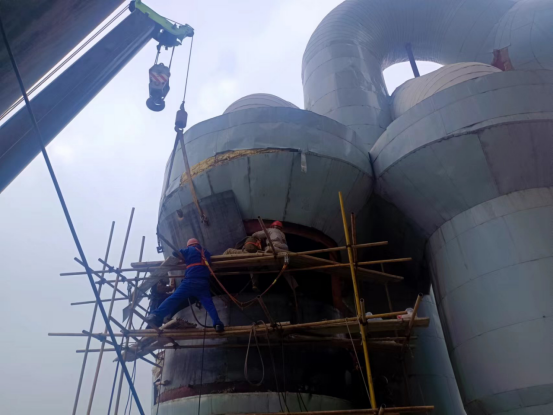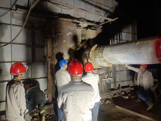 為了保證產品質量、⽣產穩定、設備⾼效運⾏。當接到任務的那一刻起,全體參“戰”人員,圍繞補焊“烘干破旋風筒,穩定窯生產”這一工作重心,迅速集結,在總經理吳紅衛同志的帶領下,公司領導班子、安環生產科、成品裝置等管理人員一邊召開現場研判分析會,定方案、備材料,定人員;一邊圍繞搶修任務,按照檢修周期以“應修盡修、應檢盡檢”的原則要求,舉一反三,見縫插針,開展總動員,做好各臨時作業區檢修⽅案和推進工作,周密組織⼈⼒物⼒投⼊到檢修之中。清理電收塵積灰、檢查更換電收塵極絲、更換大布袋收塵器濾袋、清理預熱器結皮、碎化窯內結蛋等⼤⼩20余項檢修任務,集⾃⾝⼒量,同⼼協⼒、不畏苦累,全體參“戰”人員36⼩時晝夜不停,全⼒以赴投身到檢修當中,于8月17日傍晚21:20分順利完成此次搶修。