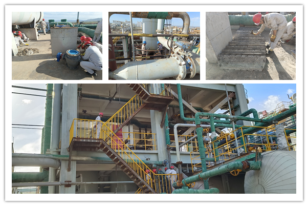 檢修第一天,各崗位管線旁和設備前隨處可見檢修人員忙碌的身影,全體員工以飽滿的熱情和昂揚的斗志全身心投入到檢修工作中。在檢修中錘煉了意志、增長了才干、提升了能力。本次檢修主要涵蓋了現場設備閥門的維護保養以及安全運行檢查,精餾高低塔清理,干燥流化床清洗等項目。