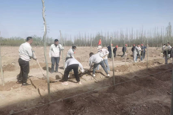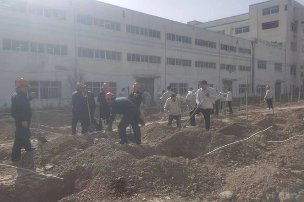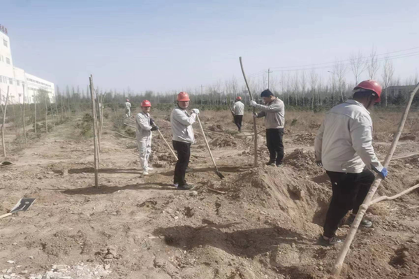 春光明媚的四月,萬物復(fù)蘇,春風(fēng)吹綠了枝頭上的嫩芽,吹綠了地上的小草,大地上的每一個(gè)角落都充滿了春天的氣息。在這美好的季節(jié),公司全體領(lǐng)導(dǎo)干部和一線員工積極、主動(dòng)參與植樹活動(dòng)。植樹現(xiàn)場,大家干勁十足,挽起衣袖、拿起鐵鍬,為一棵棵新樹苗安置"新家"。今年種植新疆楊2200多棵、絲綿木650棵、大松樹近300棵、小榆樹30000棵,為新的春天又增添了一抹盎然的綠意。看著那一片片自己親手種下的樹苗在微風(fēng)中搖曳,無不露出幸福的笑容,在一張張的照片中和鏡頭里留下了自己美好的回憶。