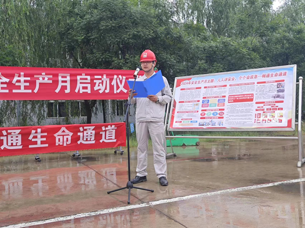 總經理尚繼榮同志為本次活動致辭,并對安全生產管理工作做出要求:一是加強“安全生產月”活動主題認識。要堅持“以人為本、安全發展”的理念和“安全第一、預防為主、綜合治理”的方針,自覺堅守“安全紅線”,恪盡職守、警鐘長鳴,始終保持危機感、緊迫感,做到居安思危、未雨綢繆、防患于未然,堅決杜絕各類事故發生。 二是持續推進公司安全生產管理工作。要充分利用“安全生產月”活動這一契機,緊緊圍繞“人人講安全,個個會應急--暢通生命通道”活動主題,加強安全生產工作,做好活動宣傳,以防范各類安全生產事故為目的,通過開展系列宣教活動,不斷增強員工安全意識和操作技能,進一步營造“人人要安全、人人管安全”的工作氛圍,以高度的責任心,切實做好、抓好安全生產工作。三是突出重點,狠抓落實,認真做好安全生產工作。各單位要以安全生產標準化為抓手,嚴格執行風險分級管控和隱患排查治理雙體系工作,深入開展重大事故隱患專項排查整治行動和安全生產治本攻堅三年行動計劃,排查整治重大事故隱患,持續強化隱患排查治理,鞏固提升安全生產標準化管理體系,扎實開展安全培訓教育,提高從業人員安全素質能力。四是嚴格“兩票三制”管理,持續開展反三違活動,確保各類作業安全有序進行。要求從事任何作業必須嚴格執行“兩票三制”管理要求,按照工作票和作業證簽發、審批管理要求逐級審核簽發、許可,各級管理人員、作業人員要把作業現場安全管理作為工作重點,嚴格作業許可、風險識別、措施落實、現場監控、完工確認等程序和規范,堅持辨識危害、規范行為、消除隱患和四不放過原則,嚴抓檢維修作業工作危害分析、安全技術交底、檢維修行為等各個環節的安全管理,有效杜絕違章作業和違章指揮,規范行為,消除隱患,確保各類作業安全有序進行,杜絕各類事故發生。五是強化關鍵裝置、重點部位、危險場所安全管理,扎實開展安全專項活動。要高度重視關鍵裝置、重點部位、脫硫、酸堿罐區各項管控措施,各級管理人員、各專業技術人員要認真檢查確認。不定期對棧橋、夾層等冷僻場所進行巡檢,發現生產安全隱患要及時記錄,并安排處理。檢維修作業必須嚴格落實安全措施,確保關鍵裝置、重點部位、脫硫、酸堿罐區設備設施、安全附件、消防系統、報警裝置、儀表儀器、監控系統等完好有效。