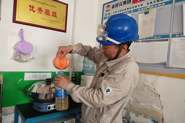盛夏時節,驕陽似火,能源化學公司廠區內熱浪滾滾。面對持續的高溫“烤”驗,為保障一線維修人員的身體健康,能源化學公司迅速行動,將熬煮綠豆湯和茶水作為關懷員工的“清涼實事”,為堅守崗位的維修人員送去陣陣沁人心脾的涼意。