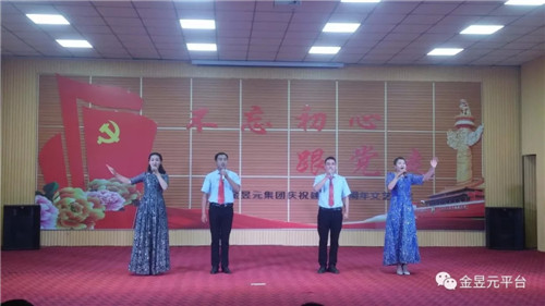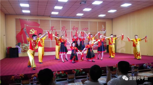 會后,以“不忘初心跟黨走”為主題,舉辦了慶祝建黨97周年文藝演出,演出圍繞“頌歌獻給黨”這一主要演出內容,以歌舞、大合唱、詩朗誦、四重唱為主要表現形式,還自編創作了小品《我想入黨》,音樂快板《幸福金昱元》,營造了歌頌黨、歌頌人民、歌頌改革開放和企業發展取得的偉大成就,暢想新時代、中國夢。