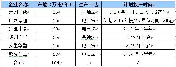 表2 2019年下半年P(guān)VC企業(yè)擴(kuò)能計(jì)劃