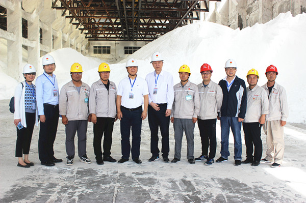 白鴻一行先后到興昊永勝鹽業公司鹽庫、鹽硝裝置、熱力裝置、企業文化展廳等地進行實地調研,并在鹽庫合影留念。