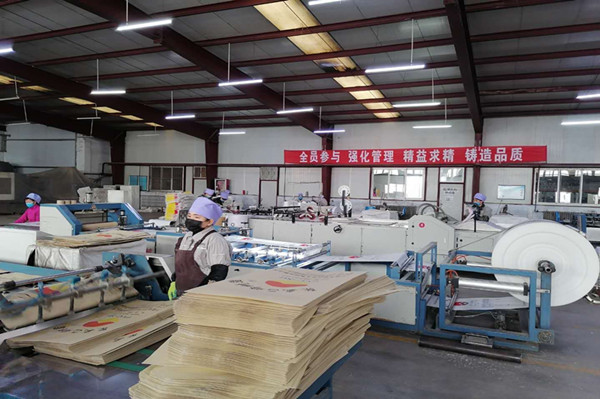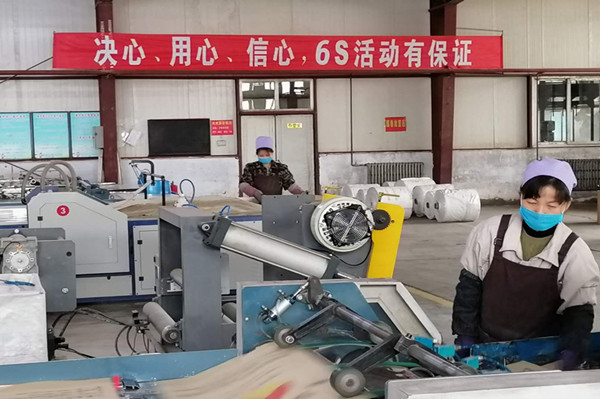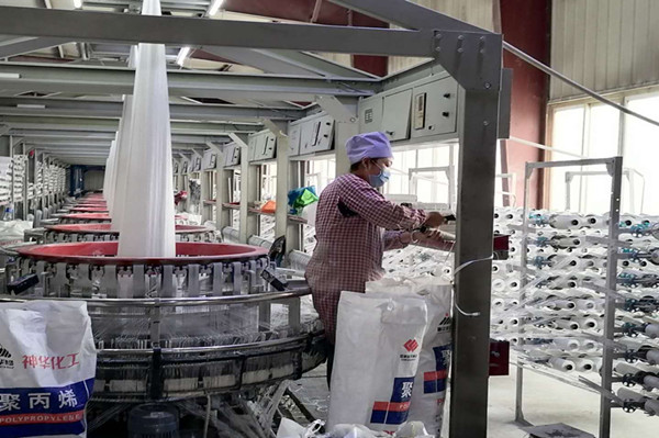 復工復產工后,華峰塑膠公司一邊加強疫情防控,一邊加強安全生產管理,組織員工加班加點提高包裝袋生產量。