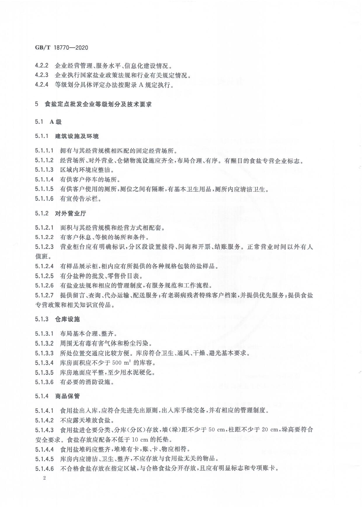 食鹽批發企業管理質量等級劃分及技術要求(GB/T 18770-2020)