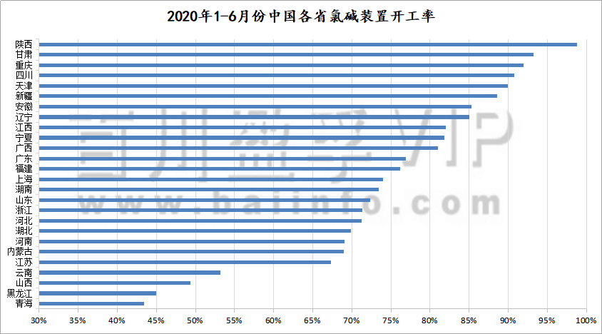 我們分析,開工負荷下調的原因:2月份由于國際公共衛(wèi)生事件影響,道路運輸不暢,原材料到廠難、液氯出貨壓力大等問題制約了堿廠開工,其中最為明顯的是湖北省燒堿裝置開工率僅2-3成,2月份中國燒堿平均開工率跌至65.56%;4-6月份國際疫情影響發(fā)酵,大宗商品產業(yè)鏈上各品種的進出口貿易受挫,燒堿難以獨善其身,銷售與成本壓力使得行業(yè)整體開工率下滑。