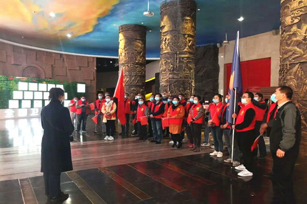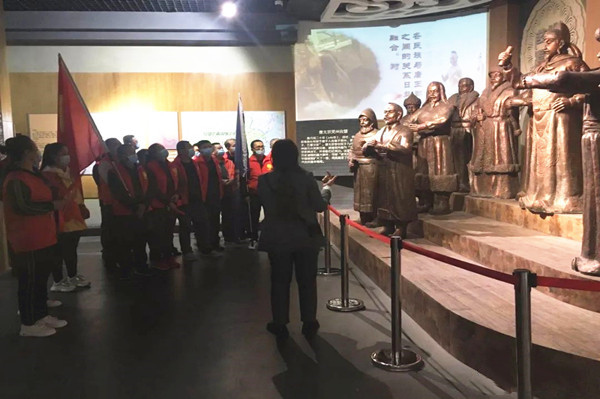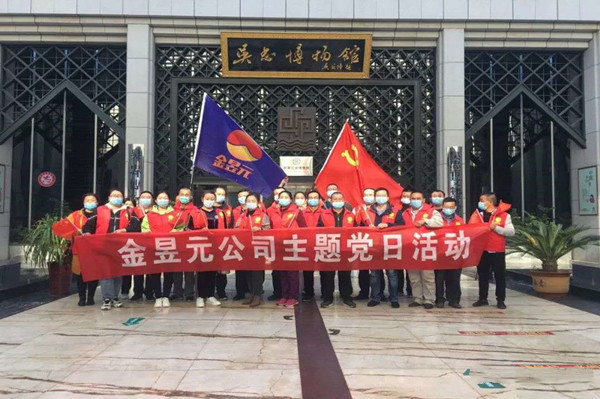 黨旗與金昱元旗幟高高飄揚,黨員們身著紅色志愿者馬夾,手持五星紅旗,排著整齊的隊伍接受防疫檢查。展覽廳里,大家認真聆聽古靈州歷史文化、吳忠革命史講解,或駐足細心觀賞歷史文物,或三五一群交流體會。大家悉心領(lǐng)略地方文化史,回顧紅色歷史,緬懷革命先烈,汲取前行力量。恰逢明年是中國共產(chǎn)黨建黨100周年和金昱元集團建企30周年,全體黨員重溫了入黨誓詞,黨支部書記向全體黨員分享了30年來企業(yè)沐浴改革開放春風,在建設(shè)、改革、發(fā)展過程中的故事和取得的成就。