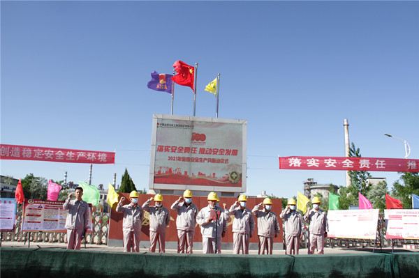 各位領導和職工代表莊嚴宣誓,承諾篤定堅守紅線意識和底線思維,從我做起、從細節做起,及時消除事故隱患,堅決制止違章作業,做一名遵章守紀、嚴謹負責的作業者。
