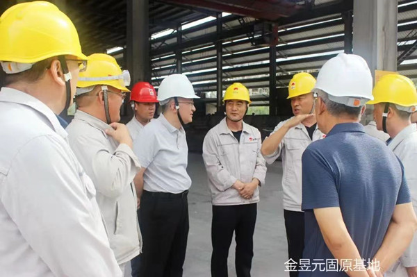 2022年7月14日下午,自治區防汛抗旱指揮部固原市督查組組長、自然資源廳副廳長呂世民,水利廳調研員郭文峰,自然資源廳王樹軍、萬學瑞、扈志勇一行,在固原市政府副秘書長徐虎,應急管理局、自然資源局、稅務局相關負責人的陪同下,蒞臨寧夏金昱元化工集團股份有限公司固原片區調研,集團公司副總裁、片區總經理王立軍,副總經理馬建東、湯洪冰、賈存富陪同。