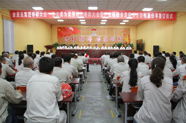 8月16日上午,寧夏金昱元化工集團股份有限公司召開“奉獻大愛”“見義勇為”表彰大會暨產業鏈融合發展項目建設目標責任書簽訂儀式。