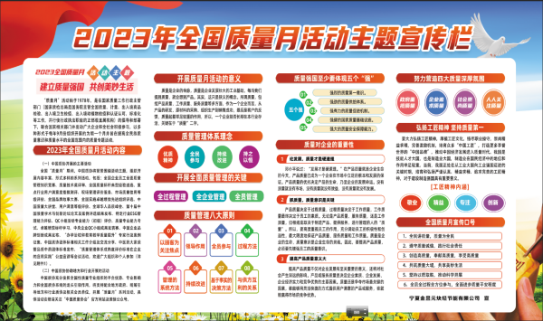 今年 9 月份是全國第 46個“質量月”,為深入貫徹習近平新時代中國特色社會主義思想,全面貫徹落實黨的二十大精神,夯實質量基礎,營造重視質量良好氣氛,引導和發動廣大員工增強質量意識,積極參與“質量月”活動,推動企業又好又快發展,寧夏金昱元化工集團股份有限公司組織開展“質量月”活動。