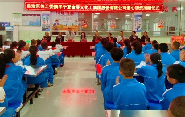 寧夏金昱元化工集團股份有限公司向彭陽縣王洼鎮中學捐助10萬元,用于購置辦公設施、體育器材、生活用品等。