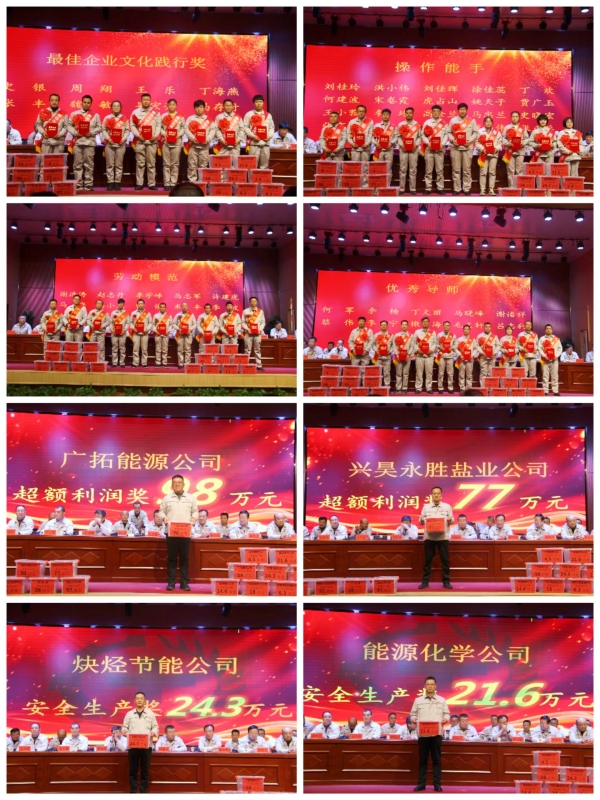 大會對一年來涌現(xiàn)出積極進(jìn)取、勇于開拓、奮發(fā)有為,為公司穩(wěn)定發(fā)展作出突出貢獻(xiàn)的45個先進(jìn)集體和123名先進(jìn)個人進(jìn)行了表彰。對獲得“超額利潤獎”的廣拓能源公司、興昊永勝鹽業(yè)公司、炔烴節(jié)能公司、資源循環(huán)公司、股份公司供應(yīng)部、華峰塑膠公司、能源化學(xué)公司,分別給予97萬元、77萬元、30萬元、29萬元、28萬元、15萬元、8萬元現(xiàn)金獎勵;對獲得“安全生產(chǎn)獎”的炔烴節(jié)能公司、能源化學(xué)公司、廣拓能源公司、興昊永勝鹽業(yè)公司、資源循環(huán)公司、華峰塑膠公司,分別給予24.3萬元、21.6萬元、18萬元、18萬元、14.4萬元、4.5萬元現(xiàn)金獎勵。通過表彰,激勵各單位和全體員工以先進(jìn)集體與個人為榜樣,繼續(xù)發(fā)揚(yáng)“團(tuán)結(jié)、拼搏、求實、創(chuàng)新”的企業(yè)精神,以更加飽滿的熱情和積極的作風(fēng)投入到企業(yè)發(fā)展建設(shè)中,全力推動2025年各項工作順利開展。